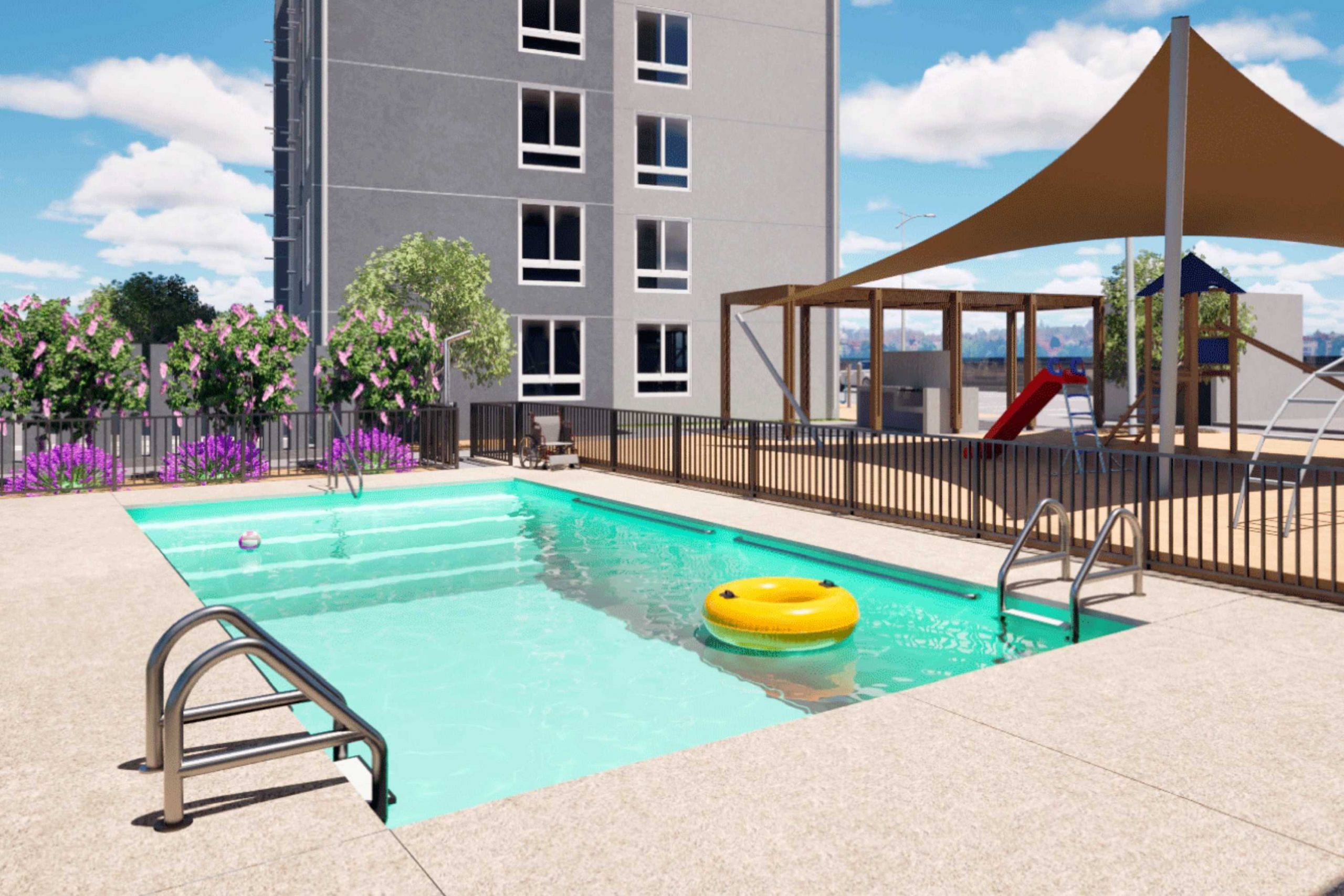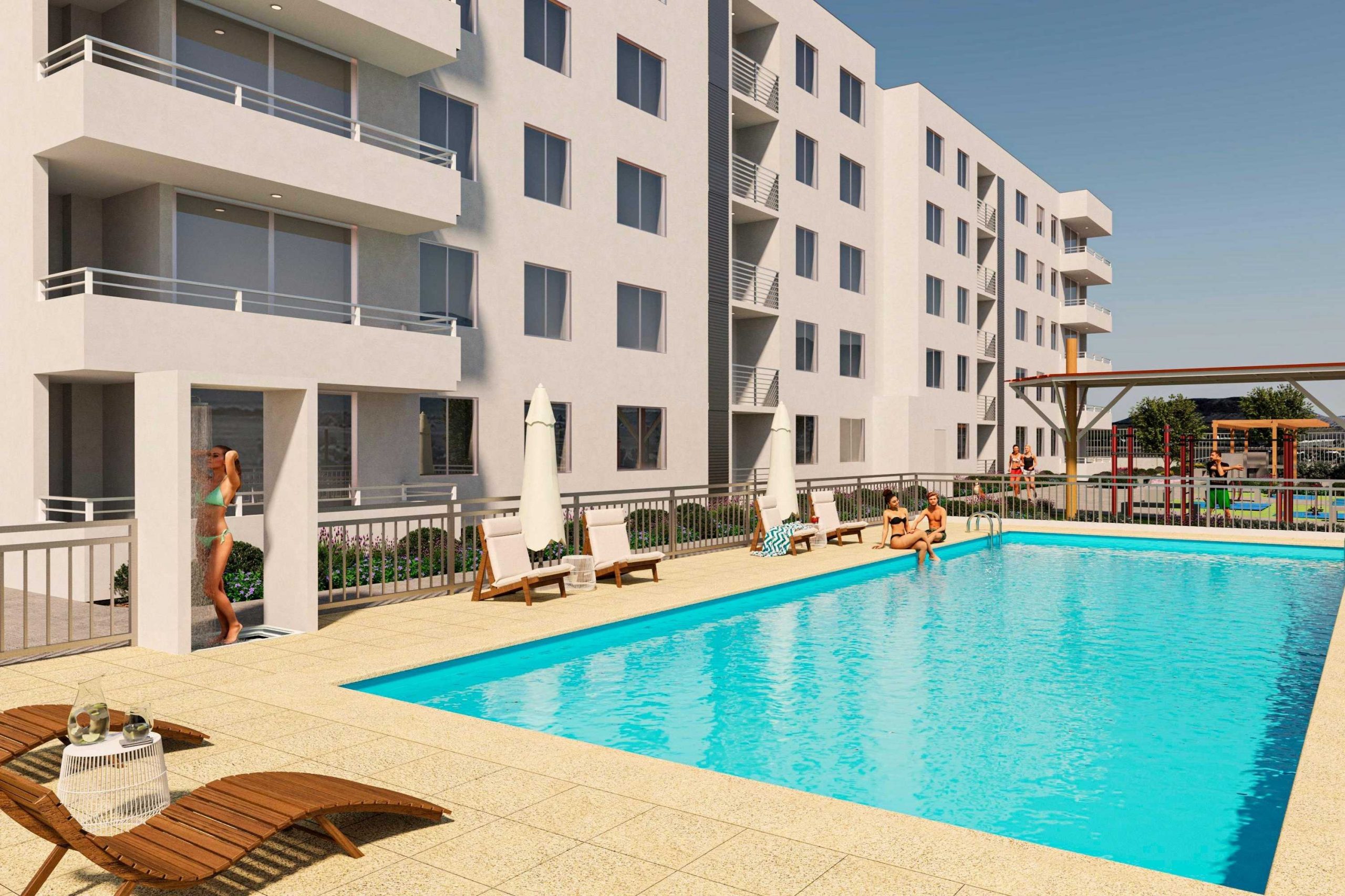 Maestranza estará compuesto por 2 edificios de 9 pisos cada uno. Todas las viviendas sobre los 56 m2 y con ventanas termopanel. Contará además con áreas verdes, piscina, quinchos, bicicleteros, zona de juegos y plaza activa, 2 salas multiuso con terraza de esparcimiento y 2 locales comerciales.