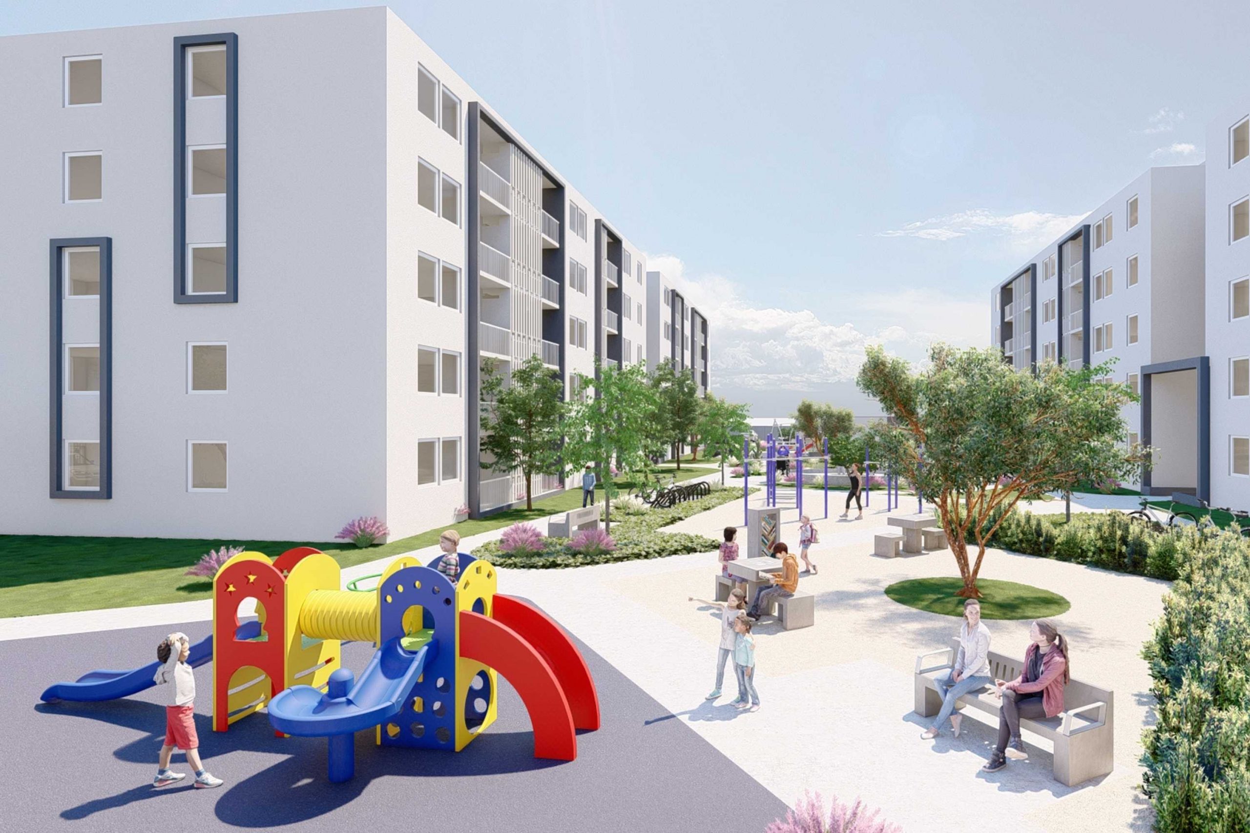 Mirador San Luis I y II incorporan el concepto de «Barrio a 15 minutos», promoviendo la integración y accesibilidad al estar a una distancia máxima de 15 minutos —a pie o en transporte público— de diferentes servicios y comodidades. Entre ambos, serán 5 edificios que varían de 4 a 5 pisos.